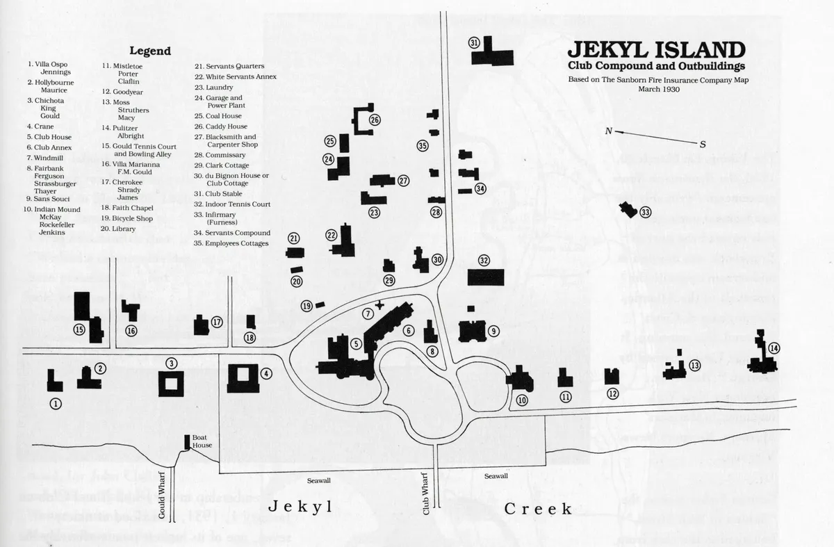 Jekyll Island Club Historic District Map of the Historic District from 1930: